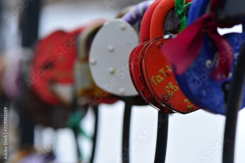 Fototapeta premium Closed lock from lovers newlyweds