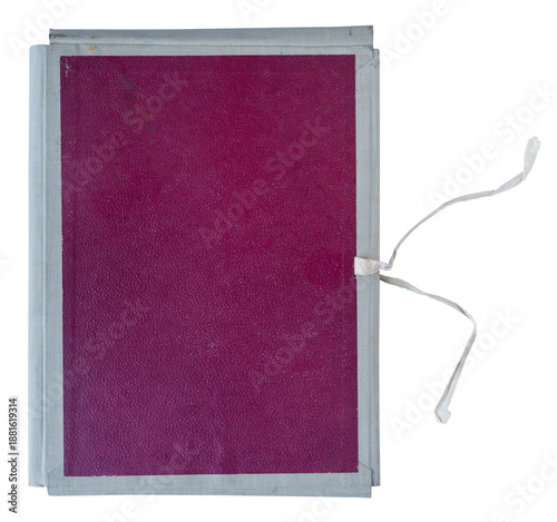 © macondos, Obraz premium Closed magenta vintage fabric bound folder with ribbon ties and inner document pocket on white