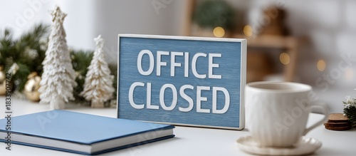 © tetxu, Fototapeta premium closed office sign with Christmas decorations
