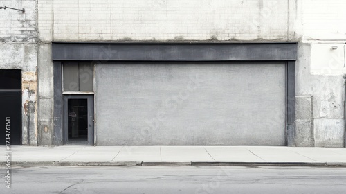 Fototapeta premium Closed Shopfront With Concrete Wall and Sidewalk