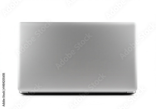 © Over View, Fototapeta premium Closed silver laptop computer on a white background, back view