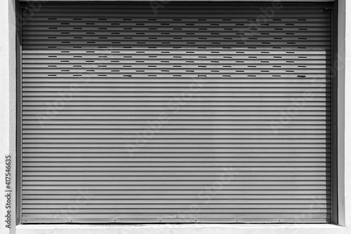 Fototapeta premium Closed Silver metal shutter garage door at home