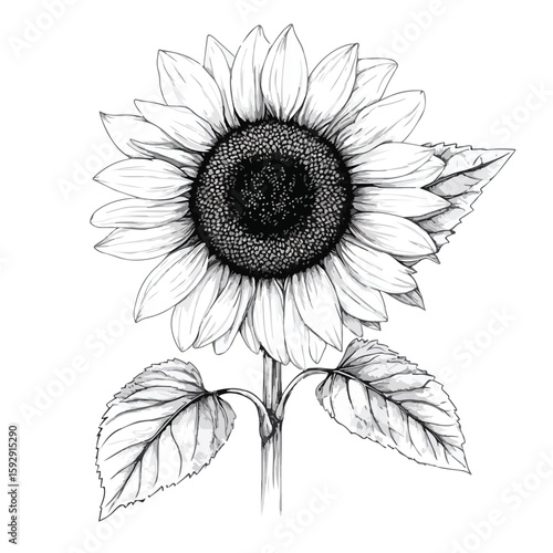 © Touch, Fototapeta premium Closed Sunflower Sketch on White Background