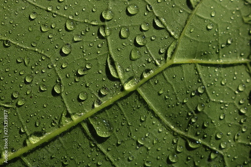 © gojalia, Fototapeta premium Closed up green leaf with rain drop