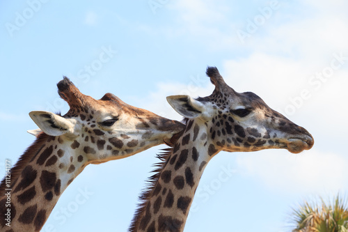 © duydophotography, Obraz premium Closed up picture of giraffes under blue sky