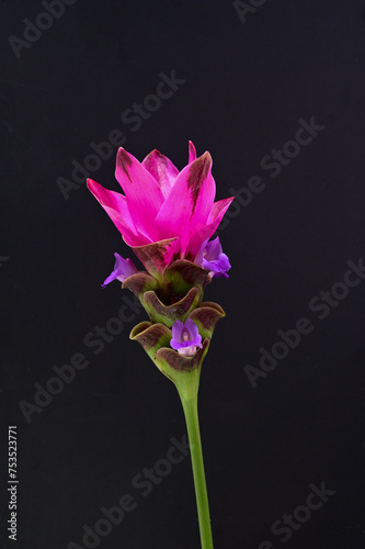 Fototapeta premium Closed up Siam Tulips on isolated black background