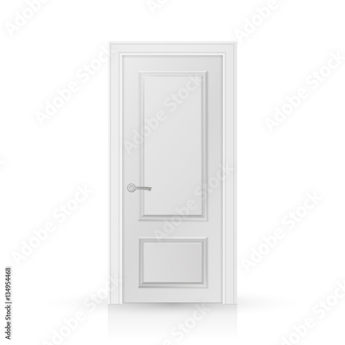 © brovkoserhii, Naklejka premium Closed white entrance door isolated on white background. Realistic vector illustration.