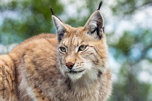 Naklejka premium Closeup and detailed animal wildlife portrait of a beautiful eurasian lynx...