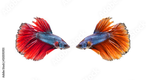 Obraz premium closeup beautiful fighting siam betta fish with isolate backgrou