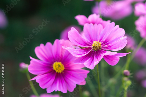 Fototapeta premium Closeup beautiful pink cosmos flower in the field, selective focus