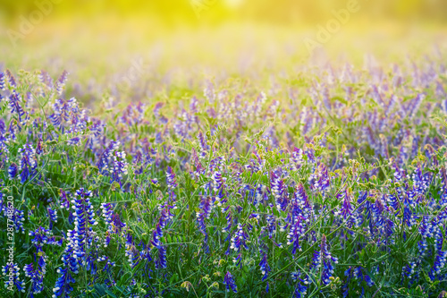 © Yuriy Kulik, Naklejka premium closeup beautiful prairie flowers in a sunlight, natural summer background