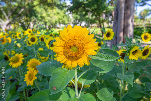 Fototapeta premium Closeup beautiful Sunflower in garden in morning