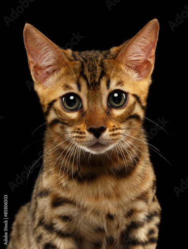 © seregraff, Obraz premium Closeup Bengal Kitty Looking in Camera on Black