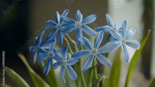 © Mokles, Fototapeta premium Closeup Blue Flowers Spring Bloom Botanical Photography