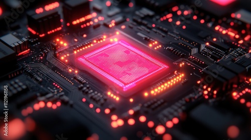 © artbot, Fototapeta premium Closeup circuit board with glowing component