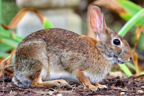 © Mark, Fototapeta premium Closeup cottontail bunny rabbit in habitat.
