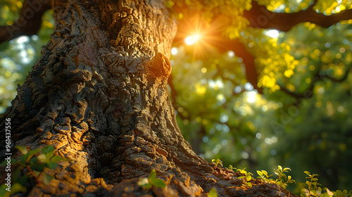 © KALEYA, Obraz premium Closeup 3D Render of Tree Bark with Sunlight