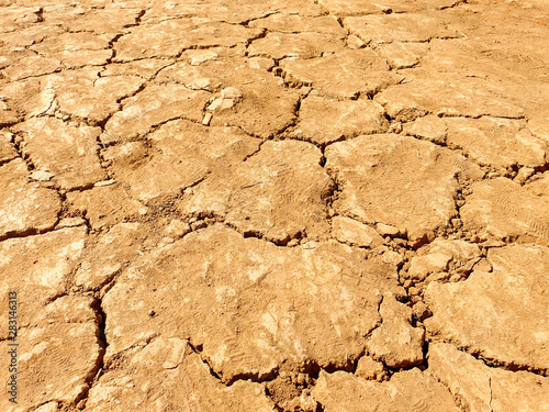 Fototapeta premium Closeup dry ground and cracked soil texture background.