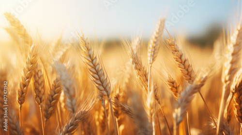Fototapeta premium closeup ears of golden wheat in wheat meadow
