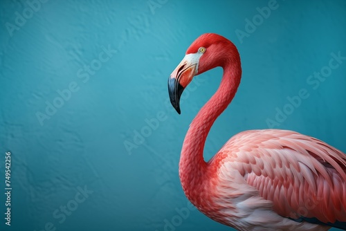 Fototapeta premium closeup flamingo on soft blue background with copy space