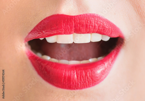 © konradbak, Naklejka premium Closeup focus on the female lips