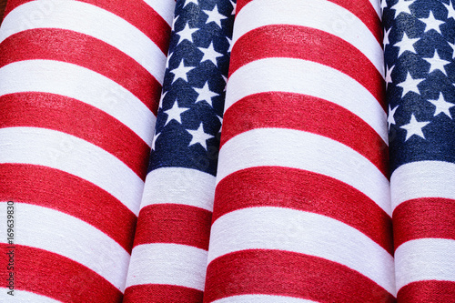 © Linda, Obraz premium Closeup folded flags - Patriotism Concept