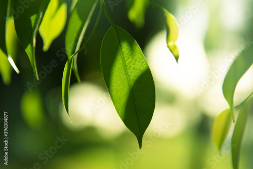 Obraz premium Closeup green Banyan leaves on the branches as the sunlight hits