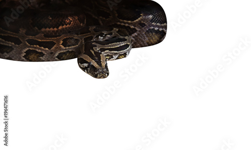 © backiris, Obraz premium Closeup Green Burmese Python Isolated on White Background, Clipping Path