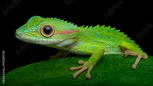 © artzone, Obraz premium Closeup Green Lizard On Leaf
