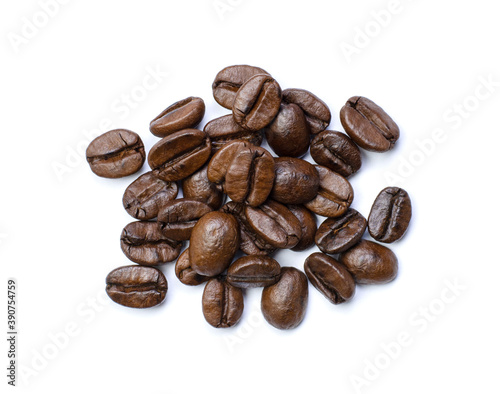 Fototapeta premium Closeup group of roasted coffee beans isolated on white