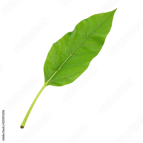 Obraz premium Closeup image of a single, vibrant green leaf isolated on a cutout background.