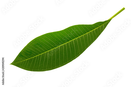 © Mayatnikstudio, Obraz premium Closeup image of tropical green leaf isolated at white background.