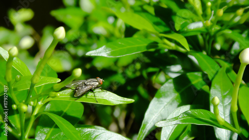 Naklejka premium closeup leaf green with a fly