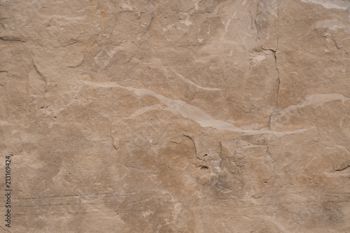 Fototapeta premium Closeup limestone rock face showing weathered strata Geology walpaper or...