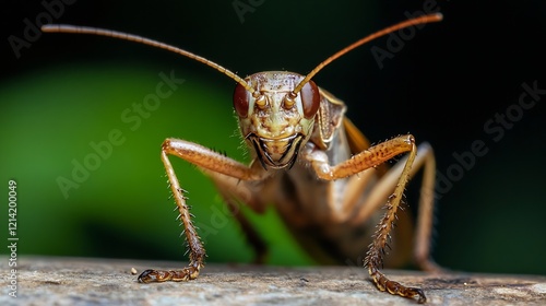 © Generative AI, Fototapeta premium Closeup Macro of Brown Cricket on Wooden Surface Showing Natural Behavior : Generative AI