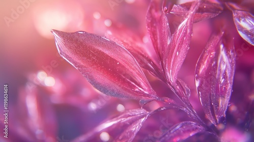 © saicle, Naklejka premium Closeup macro shot of pink leaves with dreamy bokeh background, soft light