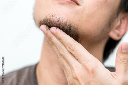 Obraz premium Closeup men beard with hand touching black hair at chin