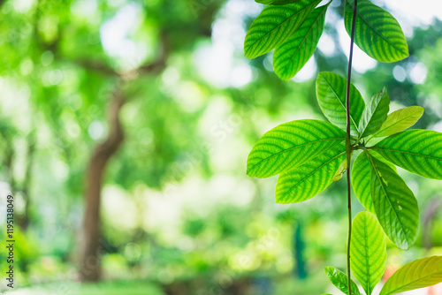 © jaturonoofer, Fototapeta premium Closeup nature view of green leaf with copy space using as background and fresh ecology wallpaper concept