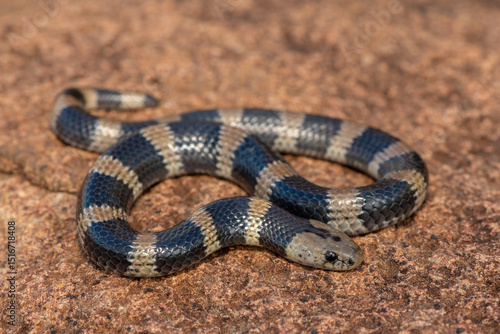 © Craig, Naklejka premium Closeup of a beautiful but venomous juvenile Sundevall's garter snake (Elapsoidea sundevallii sundevallii), also known as the African garter snake, in the wild in KwaZulu-Natal, South Africa