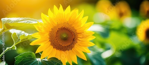 Fototapeta premium Closeup of a beautiful yellow sunflower on a green nature background and on a...