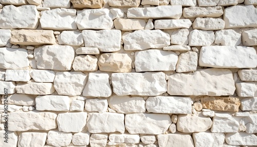 © Anas, Fototapeta premium Closeup of a beautifully stacked stone wall in warm sunlight for background.