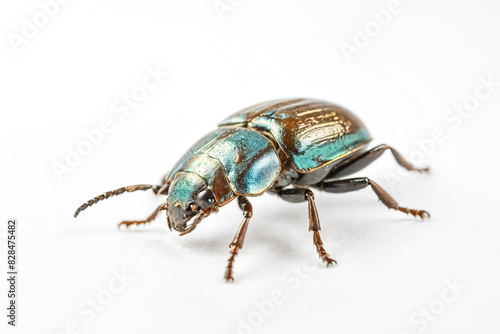 © Rysak, Fototapeta premium Closeup of a blue and brown beetle on a white background