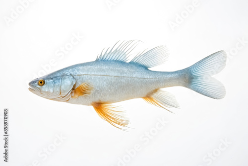 © Rysak, Obraz premium Closeup of a Blue and Yellow Fish on a White Background