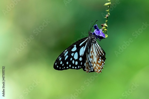 Naklejka premium Closeup of a Blue tiger with a blurry background
