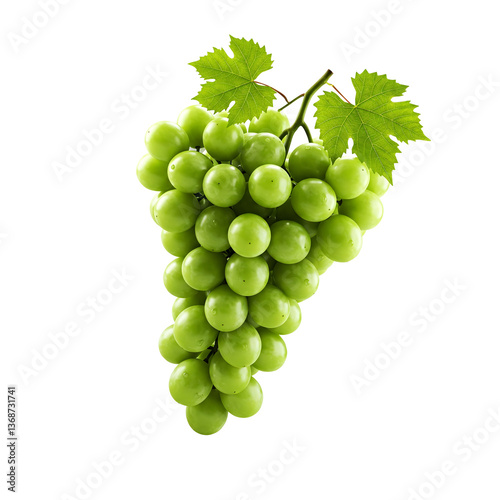 © Graypixelworks, Obraz premium Closeup of a bunch of fresh green grapes with leaves