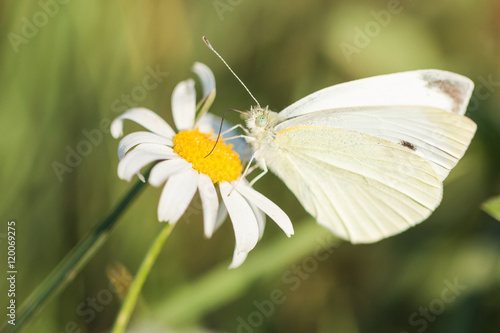© tzuky333, Obraz premium Closeup of a cabbage white butterfly feeding on nectar on a flower