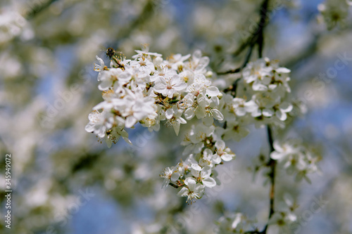 © Marina Bichevina, Fototapeta premium Closeup of a cherry-plum blossoming in spring