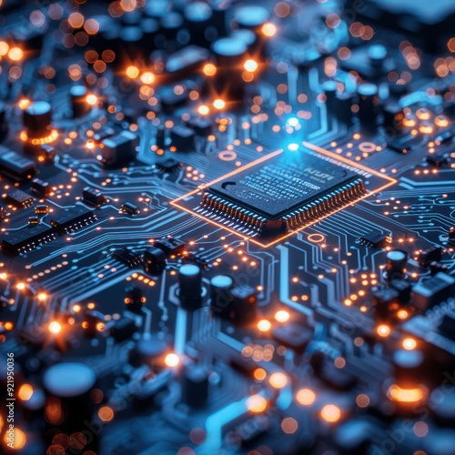 © vanzerim, Obraz premium Closeup of a Circuit Board with a Microchip