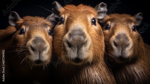 Obraz premium closeup of a cute group of capybaras, copy space, 16:9