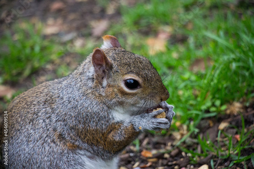 Fototapeta premium Closeup of a cute wild squirrel eats nut